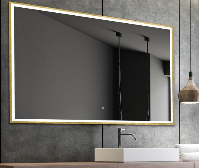 Tanja firkantet spejl m/messing ramme, integreret LED lys og touch - 120 cm Spejlet leveres med stikprop klar til brug inkl ophæng.