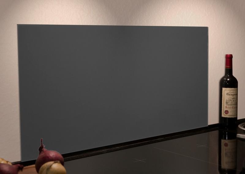 Firkantet stænkplade til køkken - 90 x 40 cm - Mat grå glas Denne stænkplade er en praktisk tilføjelse til køkkenet. På trods af det praktiske element, så har pladen et simpelt og elegant udtryk. Stænkpladen har en rektangulær form, og den har til formål at beskytte væggen fra stænk ved kogeplade eller køkkenvask. Pladen er af mat grå hærdet glas, hvilket gør den nem at tørre over med en fugtig klud efter madlavning eller opvask. Monteringen og vedligeholdelsen er ligeledes let, da pladen blot limes på væggen.