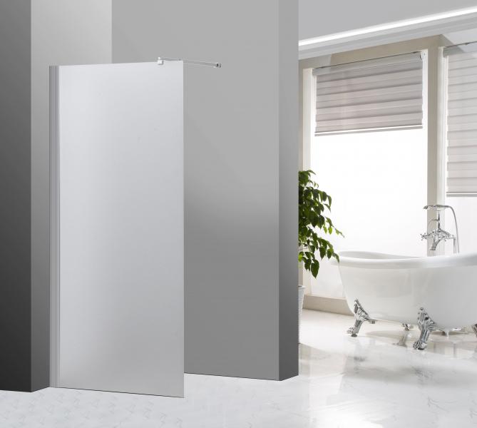 Brusevæggen leveres i frostet sikkerhedsglas med en tykkelse på 5 mm, og den sikres til væggen ved hjælp af vægprofilen i forkromet aluminium. Brusevæggens design er stilrent, moderne og diskret. Glasvæggen kan let aftørres efter bad, og den bør vedligeholdes jævnligt med neutrale rengøringsmidler uden syre- eller baseopløsninger.