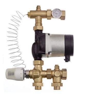 Roth Gulvvarmeshunt med 3-vejs ventil og termostatisk ventil samt Alpha2 L 15-60 pumpe. Shunten anvendes sammen med gulvvarmefordeleren. Shunten er forsynet med 3-vejs blandeventil med følerelement for regulering af fremløbstemperaturen fra 20-70 °C.
