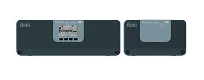 Roth Touchline® SL kontrolenhed 8 + 4. Der kan tilmeldes op til 12 rumtermostater med op til 4 stk. 230 V termomotorer på hver output. Man kan også vælge at én rumtermostat skal styrer flere output, f.eks hvis der er 6 kredse i et rum. De to kontrolenheder skal forbindes med det medfølgende BUS-kabel |