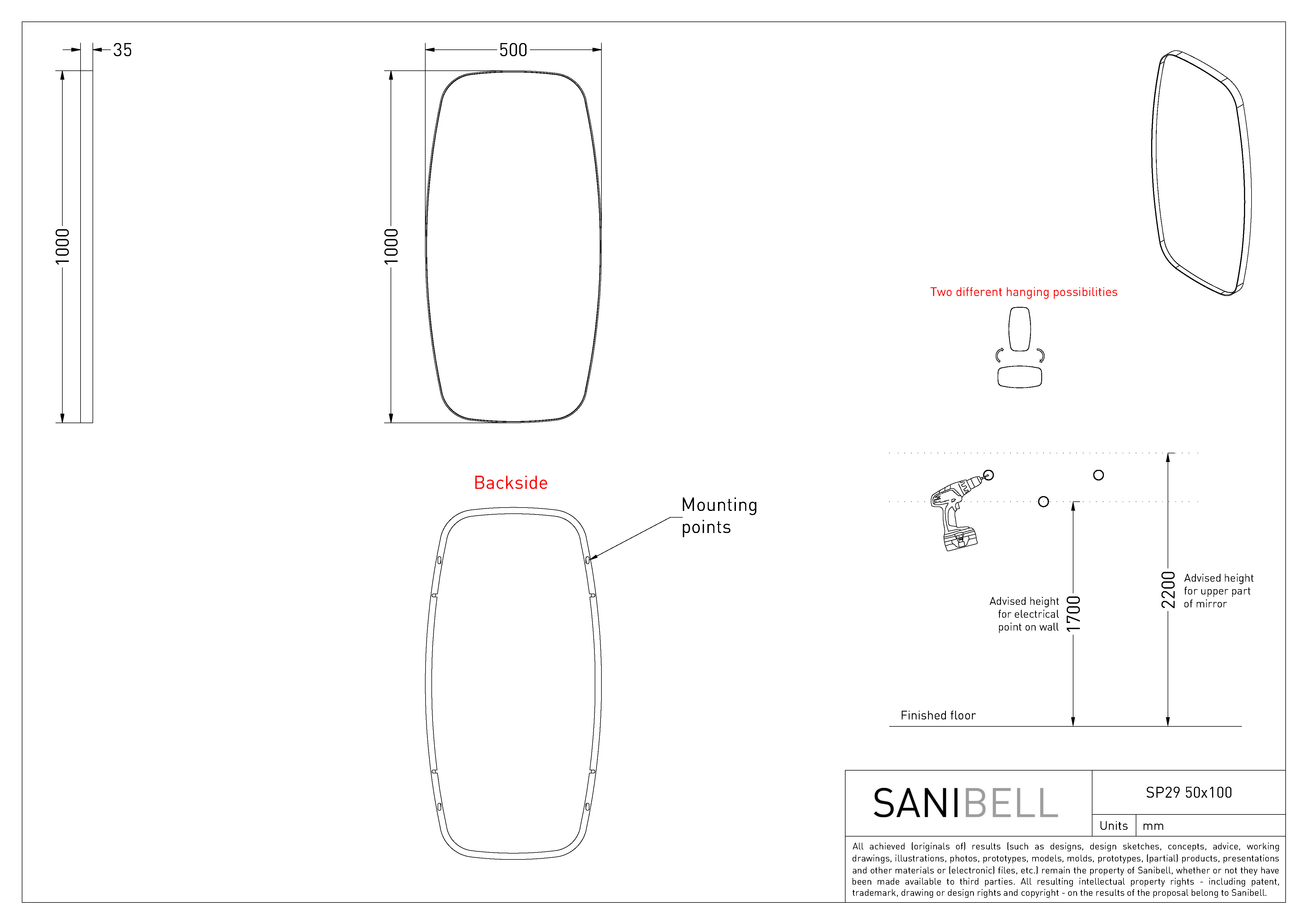 Sanibell Ink SP29 superellipse spejl m/ramme 50 x 100 cm - Børstet kobber Minimalistisk spejl med ramme, som forfra er helt slank, men fra siden træder frem fra spejlets profil. Formen er superellipse og dermed ikke helt rund, og ikke helt firkantet. Et spejl på badeværelset, i soveværelset eller i entréen er en alletiders måde at skabe liv og bryde de linjer der ellers ofte præger hjemmet. Kombiner eventuelt spejlet med elegante væglamper, som kan være med til at skabe atmosfære, godt arbejdslys og understrege indretningsstilen. Specifikationer: