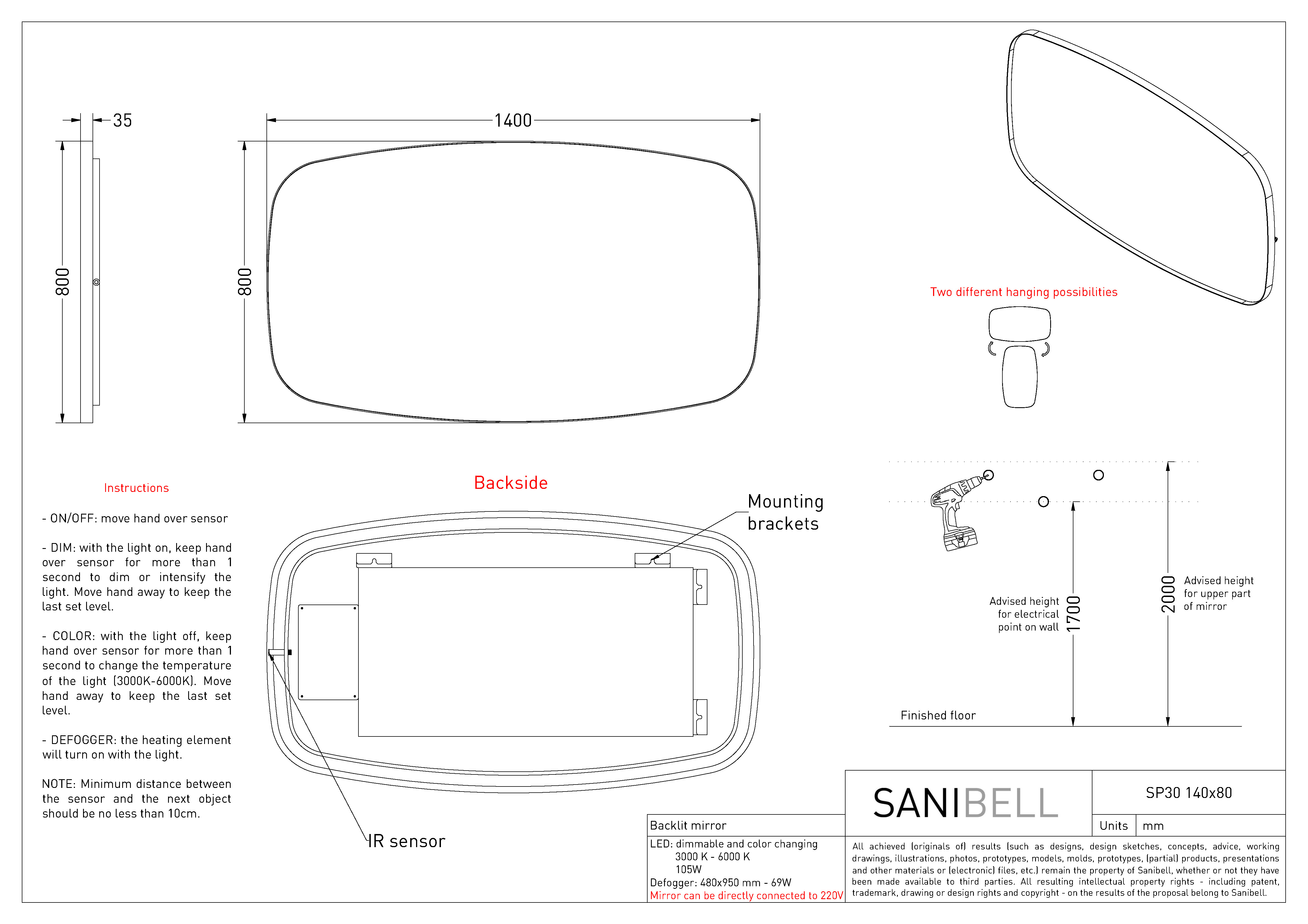 Sanibell Ink SP30 superellipse spejl m/backlight, varme og sensor 140 x 80 cm - Børstet mat guld Sanibell Ink spejl i superellipse form: Den afrundede firkantede form er både bryder linjerne på badeværelset, men virker på samme tid samlende for det visuelle udtryk i indretningen. Spejlet er indrammet af en flot ramme, som er slank forfra, men fra siden er bredere. Spejlet lyser væggen bag sig op med sit indirekte lys, som kan justeres i både styrke og farvetemperatur ved brug af sensorkontakten i bunden af spejlet. Udover backlight har spejlet også indbygget varmefelt, hvilket betyder at du kan nyde den luksuriøse oplevelse af et dugfrit spejl - selvom om du lige har taget et langt varmt bad. Specifikationer: