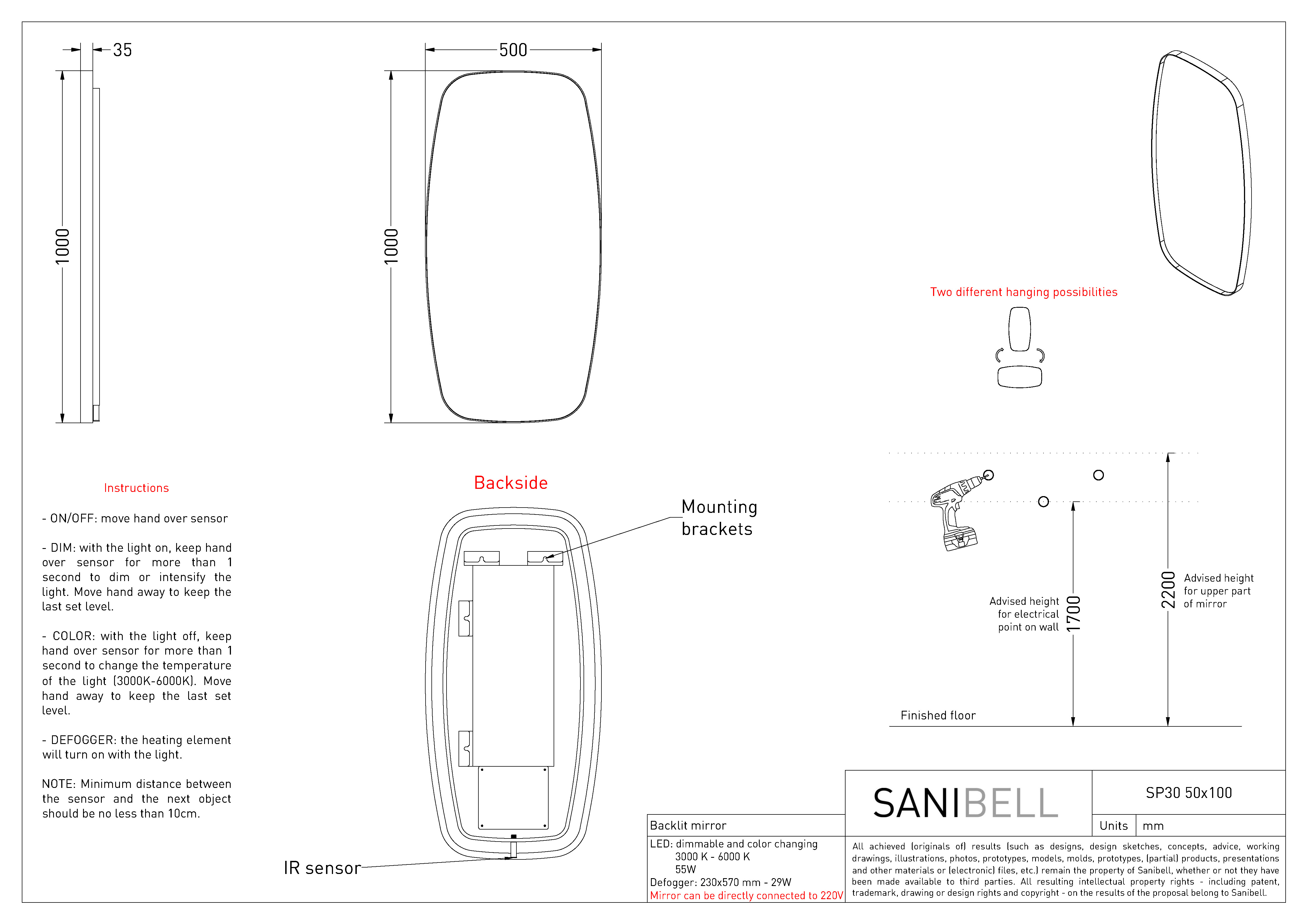 Sanibell Ink SP30 superellipse spejl m/backlight, varme og sensor 50 x 100 cm - Børstet kobber Sanibell Ink spejl i superellipse form: Den afrundede firkantede form er både bryder linjerne på badeværelset, men virker på samme tid samlende for det visuelle udtryk i indretningen. Spejlet er indrammet af en flot ramme, som er slank forfra, men fra siden er bredere. Spejlet lyser væggen bag sig op med sit indirekte lys, som kan justeres i både styrke og farvetemperatur ved brug af sensorkontakten i bunden af spejlet. Udover backlight har spejlet også indbygget varmefelt, hvilket betyder at du kan nyde den luksuriøse oplevelse af et dugfrit spejl - selvom om du lige har taget et langt varmt bad. Specifikationer: