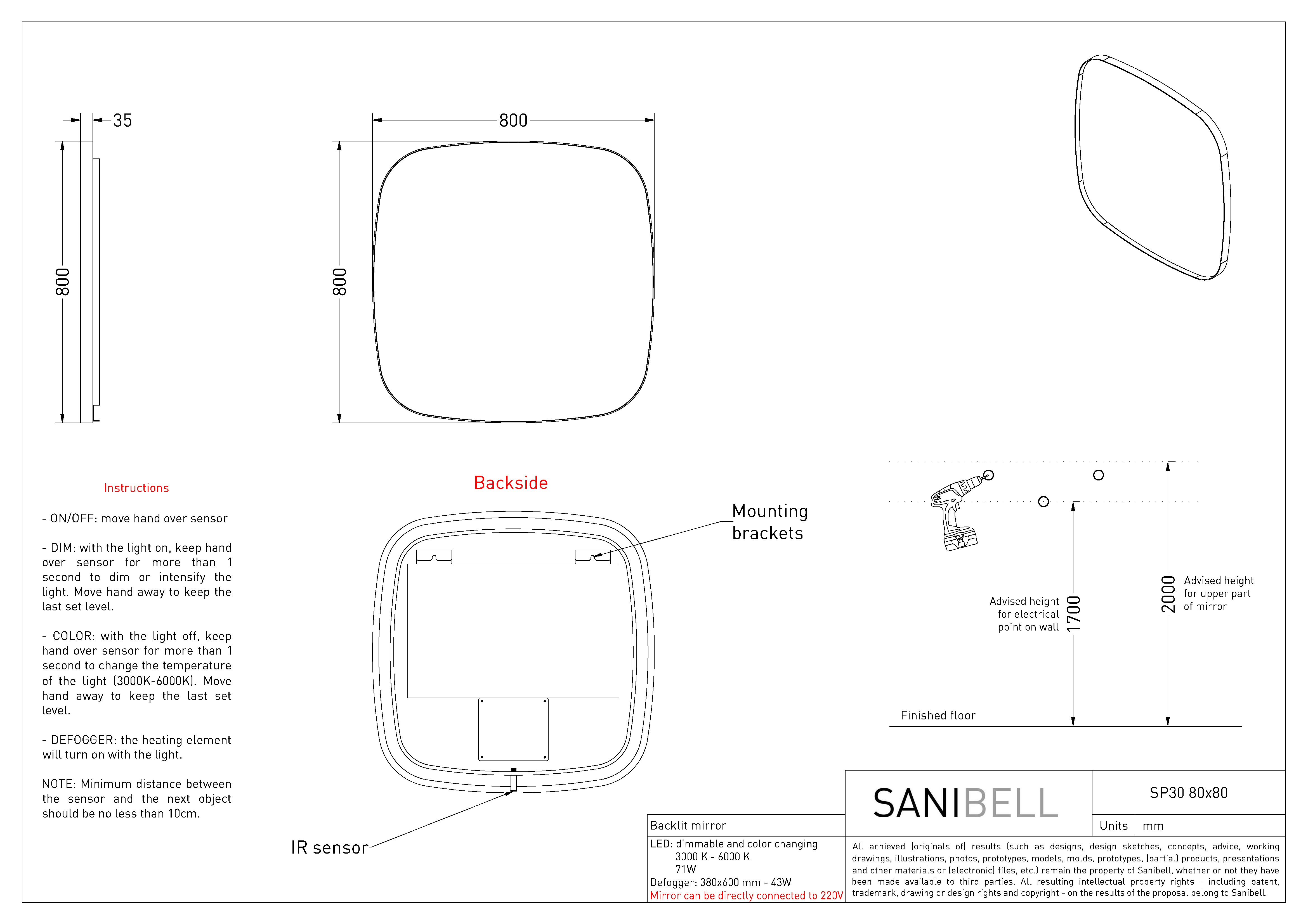 Sanibell Ink SP30 superellipse spejl m/backlight, varme og sensor 80 x 80 cm - Børstet kobber Sanibell Ink spejl i superellipse form: Den afrundede firkantede form er både bryder linjerne på badeværelset, men virker på samme tid samlende for det visuelle udtryk i indretningen. Spejlet er indrammet af en flot ramme, som er slank forfra, men fra siden er bredere. Spejlet lyser væggen bag sig op med sit indirekte lys, som kan justeres i både styrke og farvetemperatur ved brug af sensorkontakten i bunden af spejlet. Udover backlight har spejlet også indbygget varmefelt, hvilket betyder at du kan nyde den luksuriøse oplevelse af et dugfrit spejl - selvom om du lige har taget et langt varmt bad. Specifikationer: