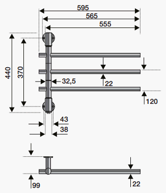 Fondo er en meget praktisk og fleksibel håndklædetørre i poleret rustfrit stål. De lige drejelige arme giver et minimalistisk udseende. Armene kan drejes enkeltvis i 180 grader.