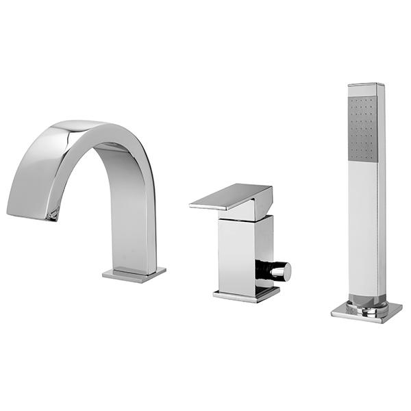 Ligro 3-huls FIRKANTET etgrebs armatur krom, håndbruser og kartud