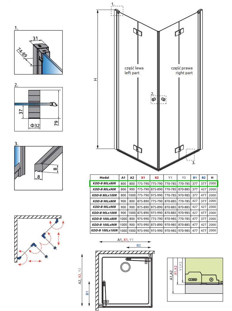 Strømberg Noma 110 bruseniche m/foldedøre - 80x80 cm - Klar glas/krom