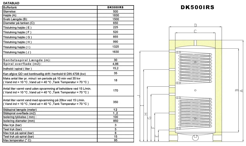 Langå isoleret akkumuleringstank med sanitetsspiral - 500 liter