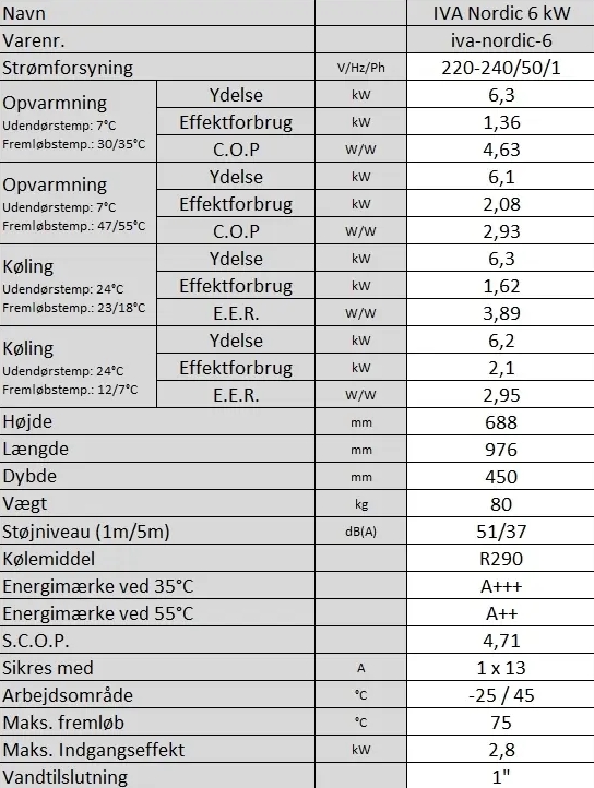 IVA Nordic Varmepumpe med WiFi - Luft til vand - 6 kW