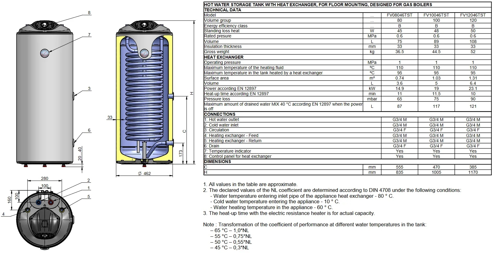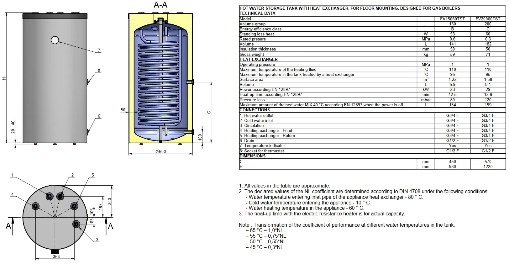 Combi varmtvandsbeholder 150 L - Fritstående med 1 spiral og elektronisk kontrol