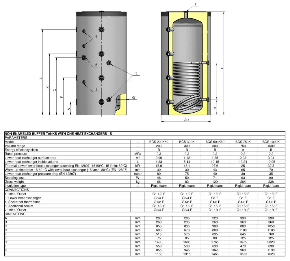 Varmtvandsbeholder - 150 L - Stor spiral - Til varmepumper