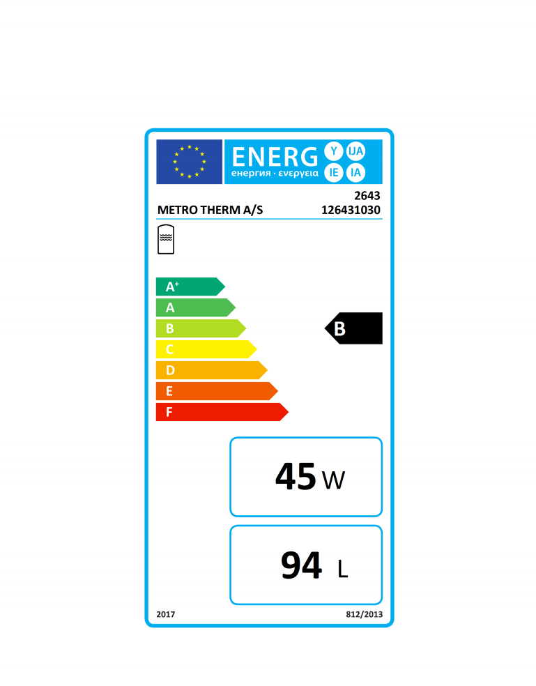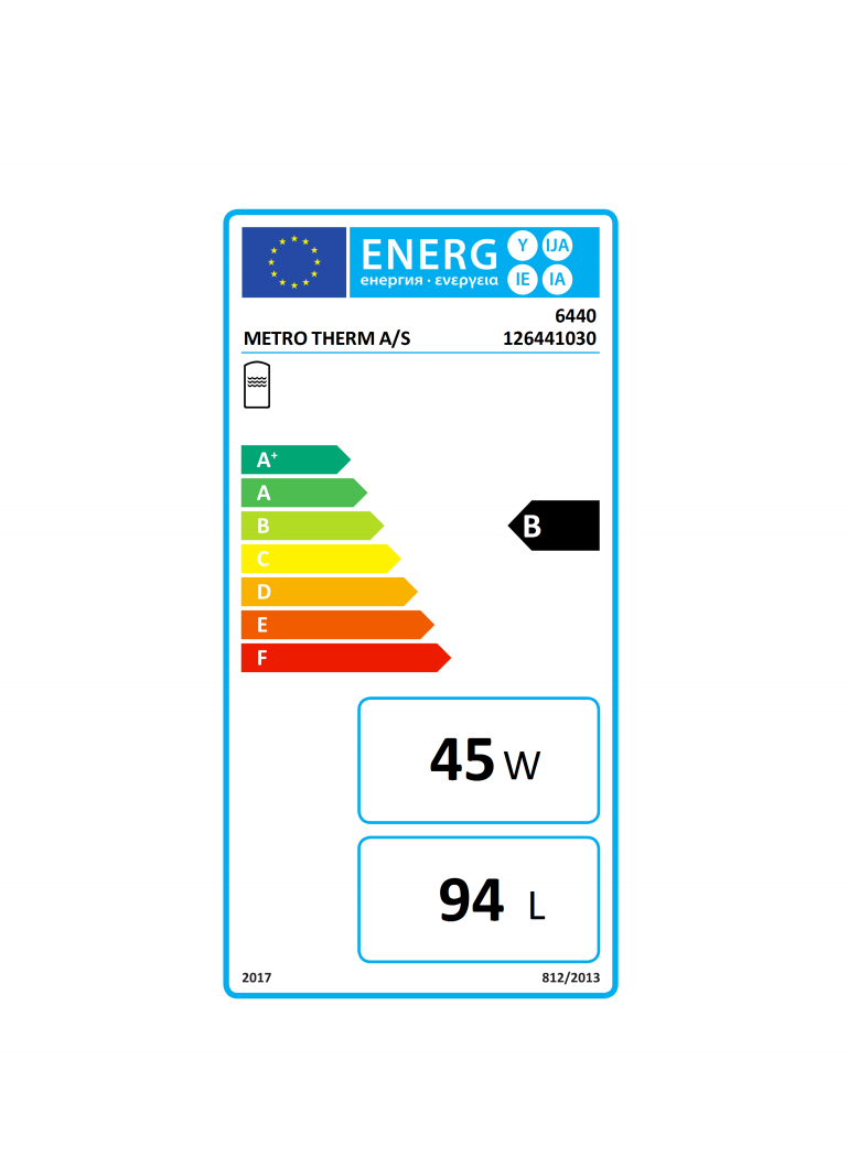 Metro varmtvandsbeholder gulvstående 95 liter rør op isoleret