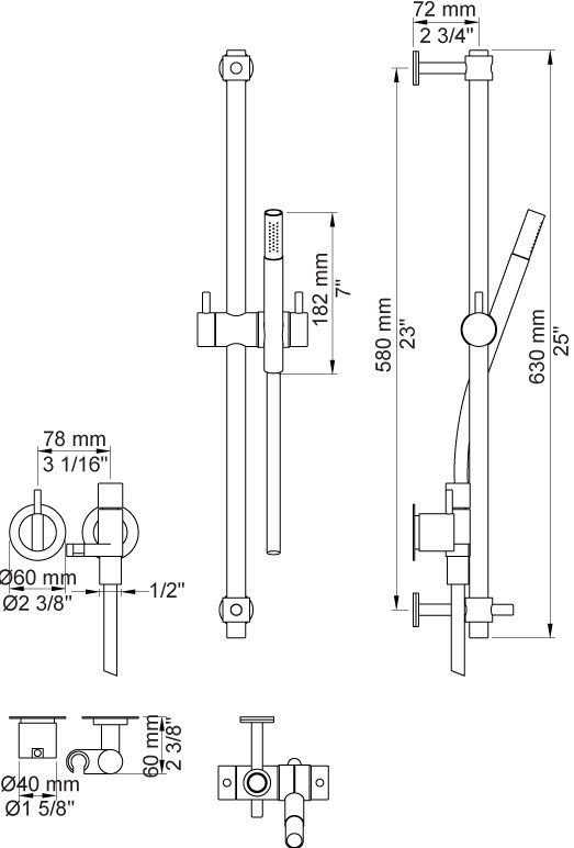 Vola Et-grebsblander T2 Håndbruser med metalslange og holder Standard 30 mm Rosetter Brusestang Krom 16 ½''RG/PEX |