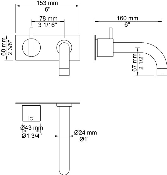 Vola Et-grebsblander for stor vandmængde med keramisk ventilenhed og fast afgangsmuffe Fast udløb, 160 mm, ø24 mm Krom 16 ½''RG/PEX