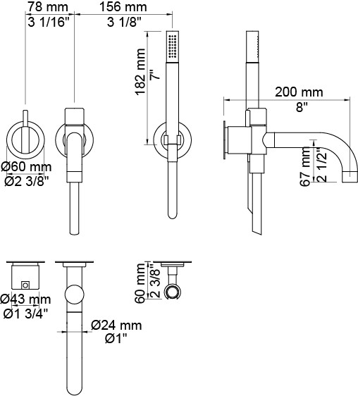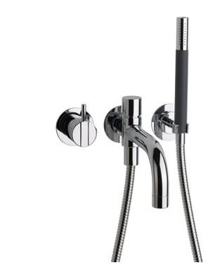 Vola Et-grebsblander for stor vandmængde med keramisk ventilenhed og fast afgangsmuffe Kartud med omskifter og håndbruser, 200 mm, ø24 mm , lavt monteret Krom 16 ½''RG/PEX