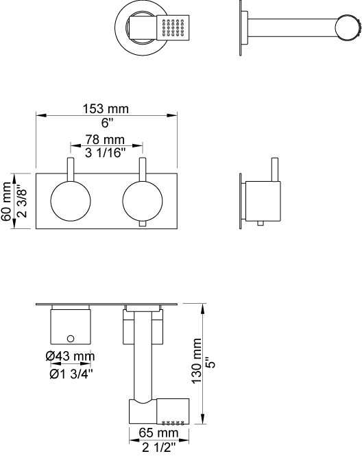 Vola 5282 Brusetermostat m/hovedbruser og 2-hulsplade - Krom