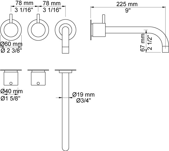 To-grebsblander med keramiske ventiler 600, 2 greb NR17, 225 mm fast tud 020 med vandbesparende luftindblander, 3 stk. 60 mm dækroset 001.