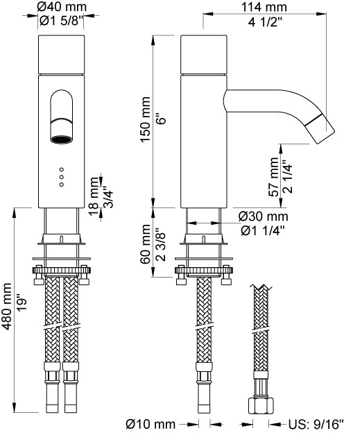 Vola Elektronisk blander med fast tud, standard udlæg, Elektronisk uden pind Net Krom 16 SPX/240V |