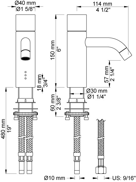 Vola Elektronisk blander med fast tud, standard udlæg, Elektronisk uden pind Batteri Krom 16 SPX/240V |