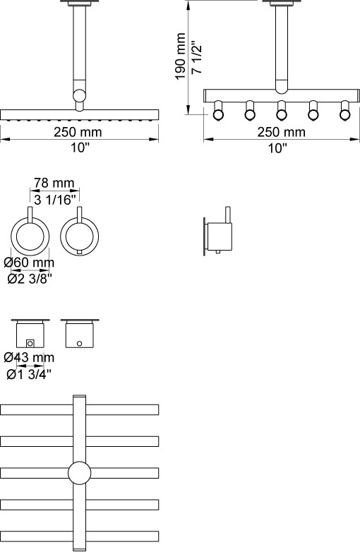 Vola Indbygningstermostat med løs afgangsmuffe Loftmonteret hovedbruser Krom 16 3/4''RG/PEX