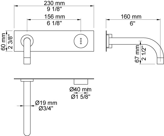 Vola Indbygningsventil til en slags vand, til berøringsfri betjening Fast udløb, 160 mm, ø19 mm Dækplade Krom 16 ½''RG |