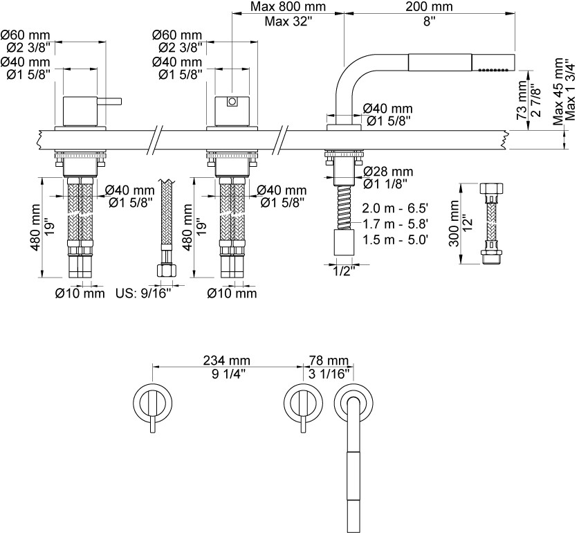Vola Et-grebsblander SC3 for karfyldning og et-grebsblander med håndbruser Separat udløb Krom 16 SPX