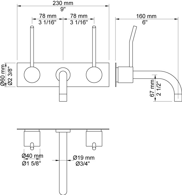 Vola To-grebsblander med afgangsmuffe i midten Fast udløb, 160 mm, ø19 mm Langt 100 mm Dækplade Krom 16 ½''RG/PEX |