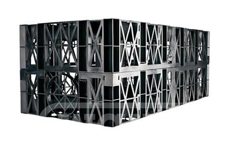 Regnvandskassetterne er fremstillet af 100% sort polypropylen (PP) genbrugsplast, Wavin Aquacell Lite bruges i arealer uden trafiklast.