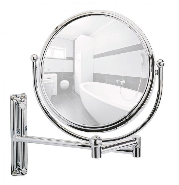 Wenko kosmetikspejl m/svingarm - Vendbar m/ 5x forstørrelse Dette kosmetikspejl forener elegance og funktionalitet. Spejlet monteres på væggen, hvor det kan drejes og justeres således at det altid er komfortabelt at bruge. Kosmetikspejlet er i højglanskrom, og det har en diameter på 19 cm. Spejlets to sider består af henholdsvis et 1:1 spejl og et spejl, der er 5 gange forstørret.